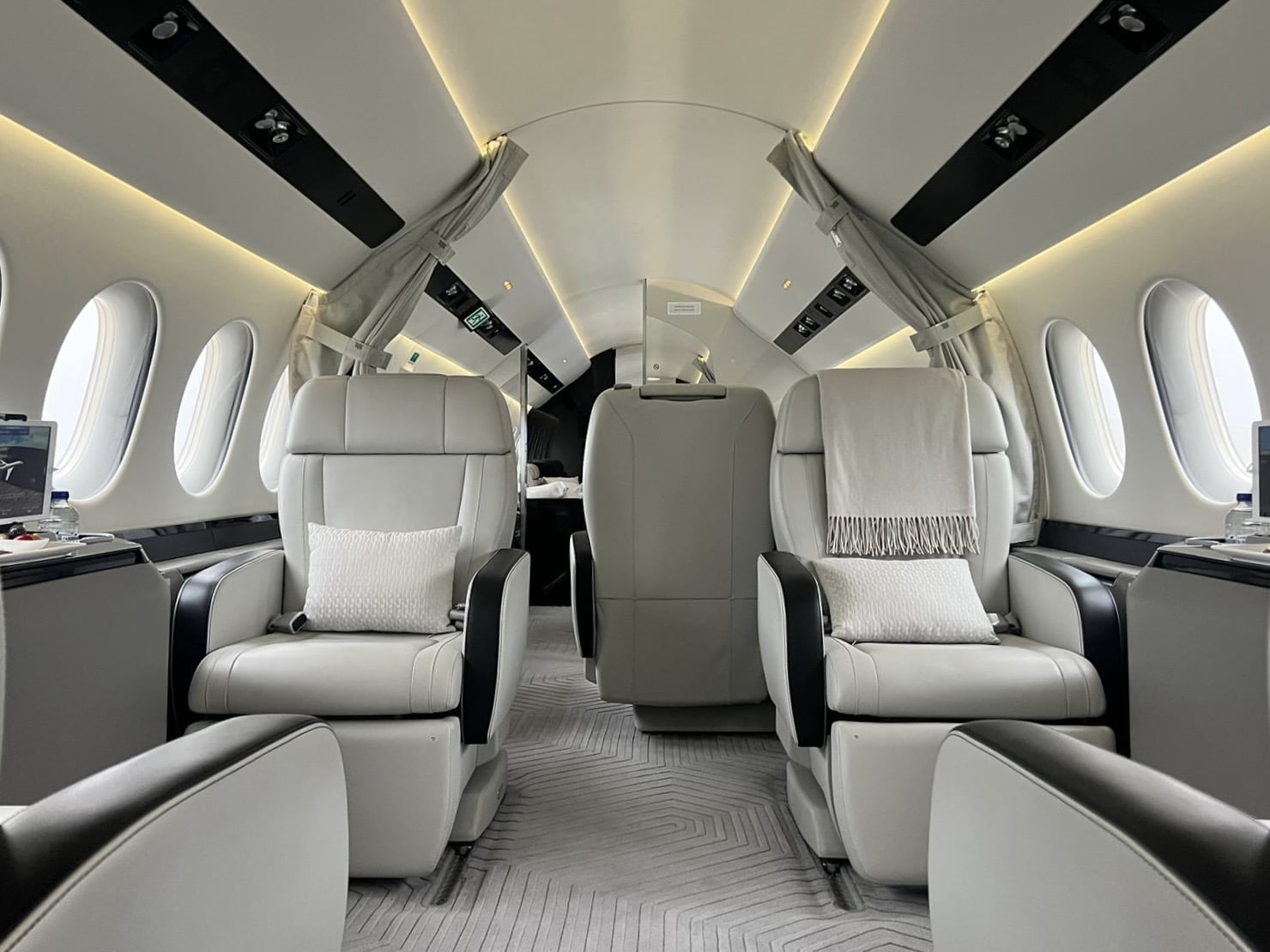 The Dassault Falcon 8X is a high-end business jet produced by the French aerospace company Dassault Aviation. The aircraft is known for its excellent range and performance. It features the iconic three engines and boasts the largest cabin among all Dassault jets. With a range of approximately 6,450 nautical miles (11,945 kilometers), the Falcon 8X can conduct non-stop long-distance flights. The aircraft can accommodate up to 14 passengers in a luxurious cabin, which can be customized for comfort and functionality. Equipped with advanced technology, the Falcon 8X also offers impressive operational efficiency.