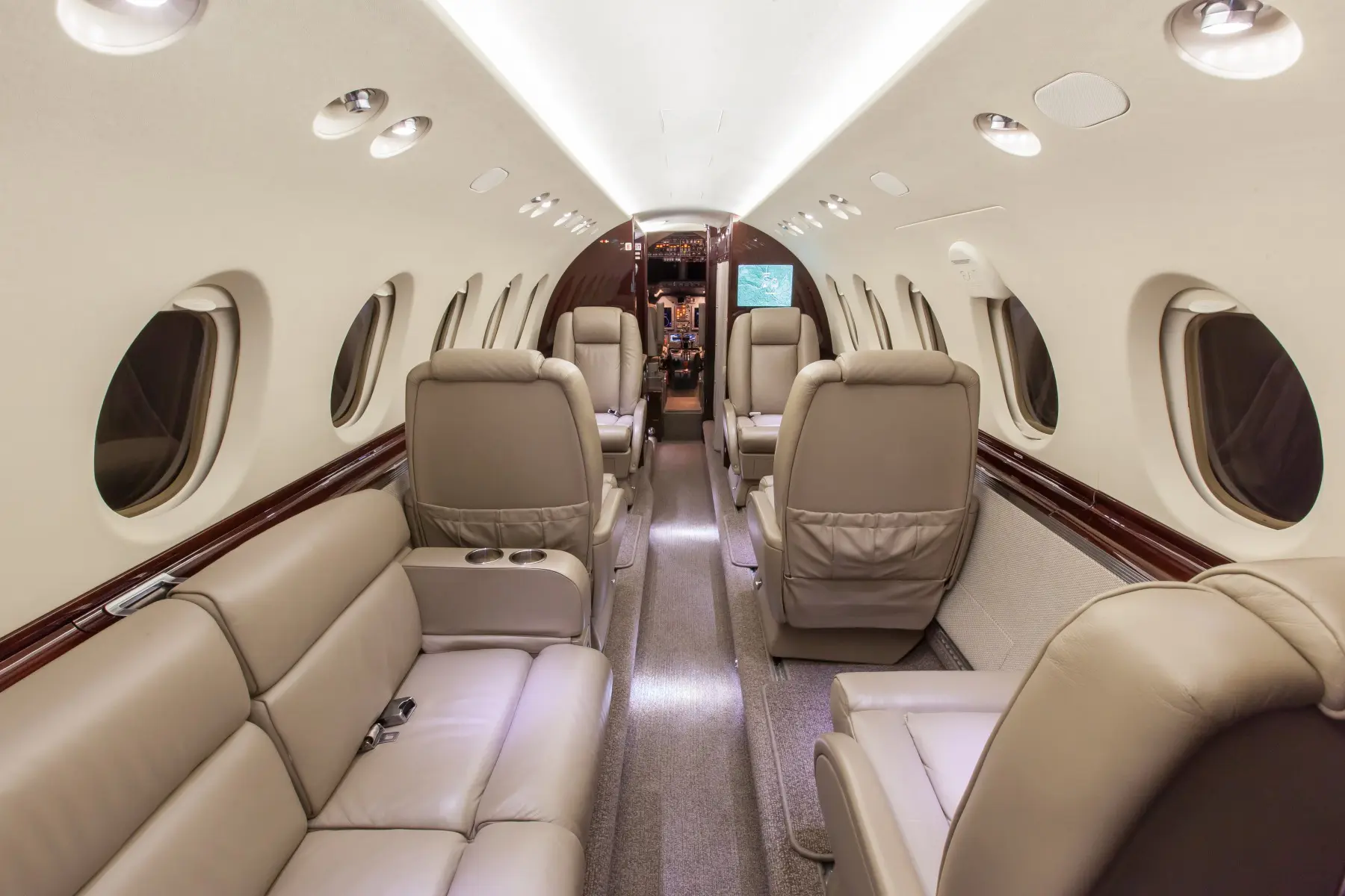The Hawker has been proven a popular choice for operations in remote and harsh environments because of their dependability. This aircraft differentiates itself from the rest with its large cabin. Passengers can comfortably stand inside the cabin, where you’ll also find amenities like a galley, coffee maker and ice drawer. The galley allows you to have hot meals aboard your flight. This aircraft is most comfortable when flying with groups of 4-6 people.